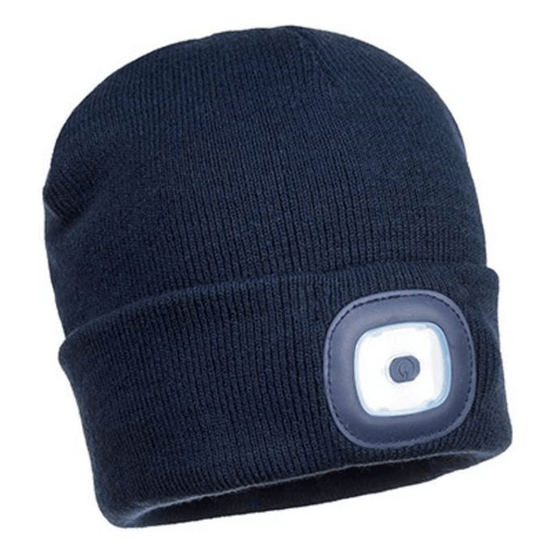 Gorro en material acrílico con doble luz led extraíble en la parte delantera